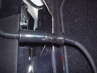 そこで、MDチェンジャーを設置する為と思われるスペース(CDチェンジャーの上)へDINケーブルを引き出すことにしました。と言ってもパサートは設置場所がプラスチックのボックスのようになっていて、そのままでは引き出すことが出来ません。このプラスチックのボックスを固定しているネジをはずして手前に引っ張り、無理やりDINケーブルを後から引き出すことにしました。あとはドングルへDINケーブルを差し込み、AUXを接続すれば完成です。ちなみにダッシュボード上のカーナビとトランク脇のスペースにあるドングルまでの接続には5mのケーブルを使用しました。