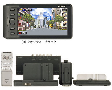 今回購入したのは、SONYのオンダッシュナビ、NV-XYZ77Bです。購入時すでに次期モデル(2005/10現在の現行モデル)が発表されるという噂がある時期でしたが、F/Wのアップデートができるので、新しいモデルが出てもそれなりに対応できるだろうということで、この機種を購入しました。主な付属品は上の写真ですが、これにオプションのビーコンユニットを一緒に購入しました。