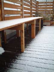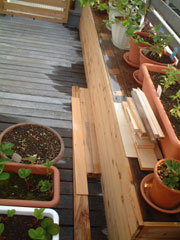 本当はウッドフェンスを作成時に使用するつもりで買っておいた1×4材を数枚使わなくなったので、それと端材を寄せ集めて屋上にベンチを作りました。これまた適当で、設計も何も無しで作りました。