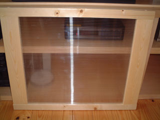 左が取り付け前、右が取り付け後です。蝶番の写真を取り忘れたのですが、スライド蝶番を使いました。キッチンの扉などに使われているものです。取り付けには35φフォスナービットが必要ですが、きれいに仕上がります。枠に使用した材のねじれが若干ありますが、なかなかきれいに収まっています。(2005/7/11記)