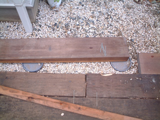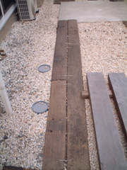 今回用意した枕木です。イタウバという木で、イペ、ウリンなどと比べても更に高耐久と言われています。