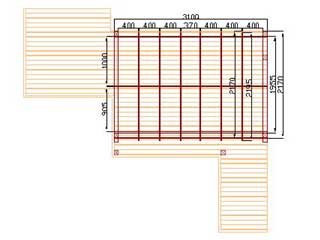 1Fリビングからウッドデッキに出るサッシはフォールディングサッシということで、ポストを立てる位置は限られました。ということで、上に乗せるビームの間隔もほぼ自動的に決まりました。