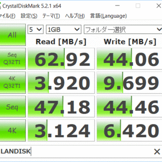 バックアップからの復元後の最初の起動時にSSDのドライバインストールが走った以外は特に何事もなく、正常に動いています。もちろんSSD化したので動きもキビキビしているうえ、アクセス音も聞こえないので寝室利用にはもってこいです。CrystalDiskMarkの結果はこの通り。